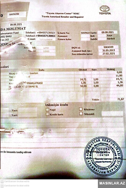 10800 Azn Sexsi Avtomobolimdi 1-ci Sahibiyem