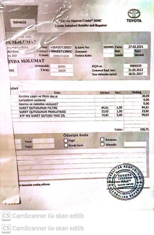 20500 Azn Avtomobil haqqında:Avtomobil tam ideal vəziyyətdədir.Avtomobilin mühərriyi,koropkası ve xodavoyu yaxsidir.Hal hazirda hec bir xerc teleb olunmur ve surulur.Sığorta ve texniki baxışı var.Cəriməsi yoxdur. Avtomobil ilkin